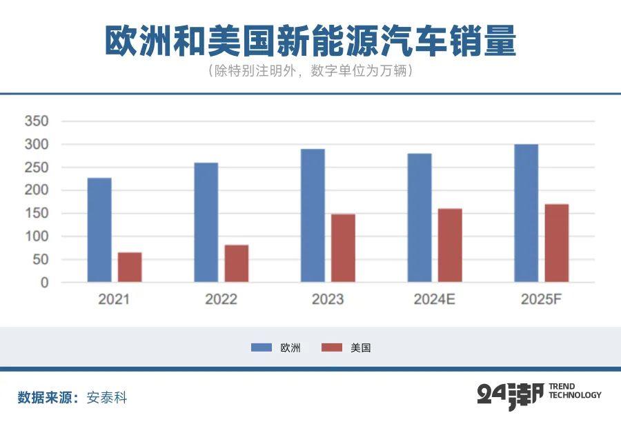 美國方面,新任總統(tǒng)特朗普預(yù)計(jì)將采取包括取消或削減IRA法案的清潔能源汽車補(bǔ)貼,對(duì)進(jìn)口電車征收高額關(guān)稅等手段限制美國電車市場(chǎng)規(guī)模。前10月美國純電和混合電動(dòng)汽車?yán)塾?jì)銷量約124.5萬輛,較去年同期增長(zhǎng)9.9%,遠(yuǎn)低于23年同期52.7%的增速。