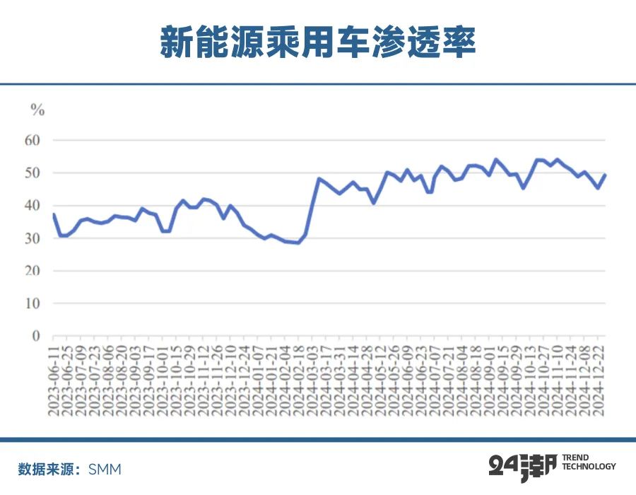 回到國內(nèi)市場(chǎng),2024年1-11月,我國新能源汽車銷量達(dá)1126.2萬輛,占汽車新車總銷量的40.3%,市場(chǎng)滲透率自7月起持續(xù)超過50%,L2級(jí)及以上輔助駕駛功能裝車率達(dá)67.1%。隨著滲透率的不斷提升,未來降速是合理且必然的。