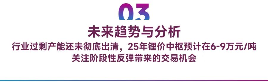 所以短期來看,碳酸鋰在25將延續(xù)供應(yīng)過剩的格局,而高企的庫存又將對(duì)現(xiàn)貨市場(chǎng)產(chǎn)生較大壓力,反映供需過剩的矛盾,整體趨勢(shì)仍在震蕩尋底的過程中。綜合來看,2025年碳酸鋰需求預(yù)期向好,但供過于求局面難以扭轉(zhuǎn),價(jià)格中樞預(yù)計(jì)在60000~90000元/噸,關(guān)注階段性反彈帶來的交易機(jī)會(huì)。