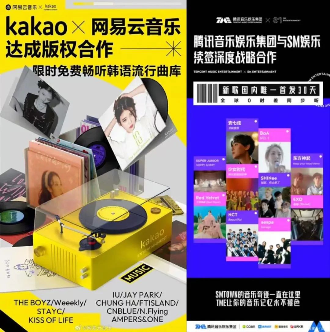 版權(quán)之爭或許一直在看不見的地方兵戎相見。2022年,網(wǎng)易云音樂宣布SM娛樂版權(quán)回歸之前,騰訊音樂TME宣布與SM娛樂深化戰(zhàn)略合作,并擁有SM娛樂新歌在中國內(nèi)地獨家首發(fā)30天的權(quán)利。