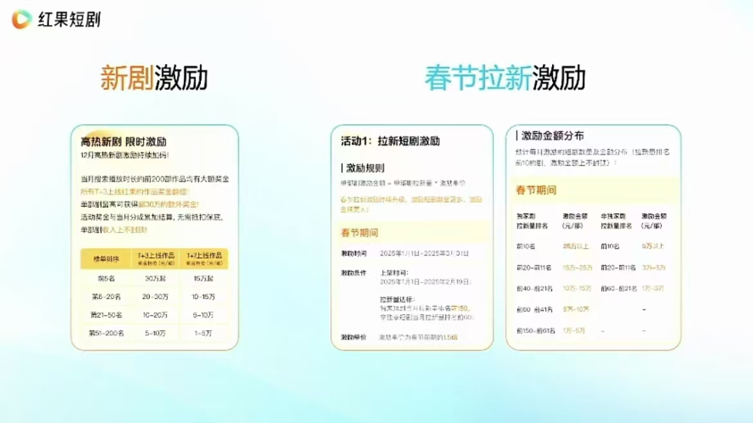 同時(shí),紅果還有額外的拉新激勵(lì):拉新前150名的獨(dú)家短劇會(huì)有1萬至25萬以上的獎(jiǎng)金。