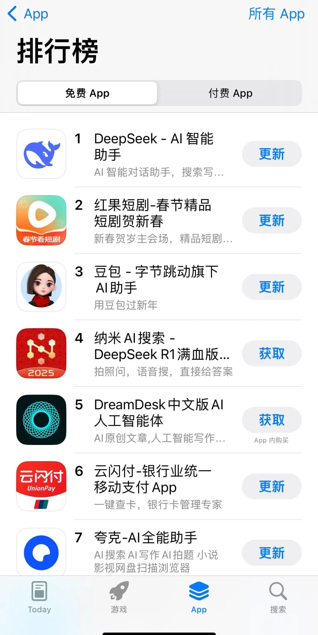 而紅果也在一眾AI相關(guān)app中沖到app store免費(fèi)榜第二。
