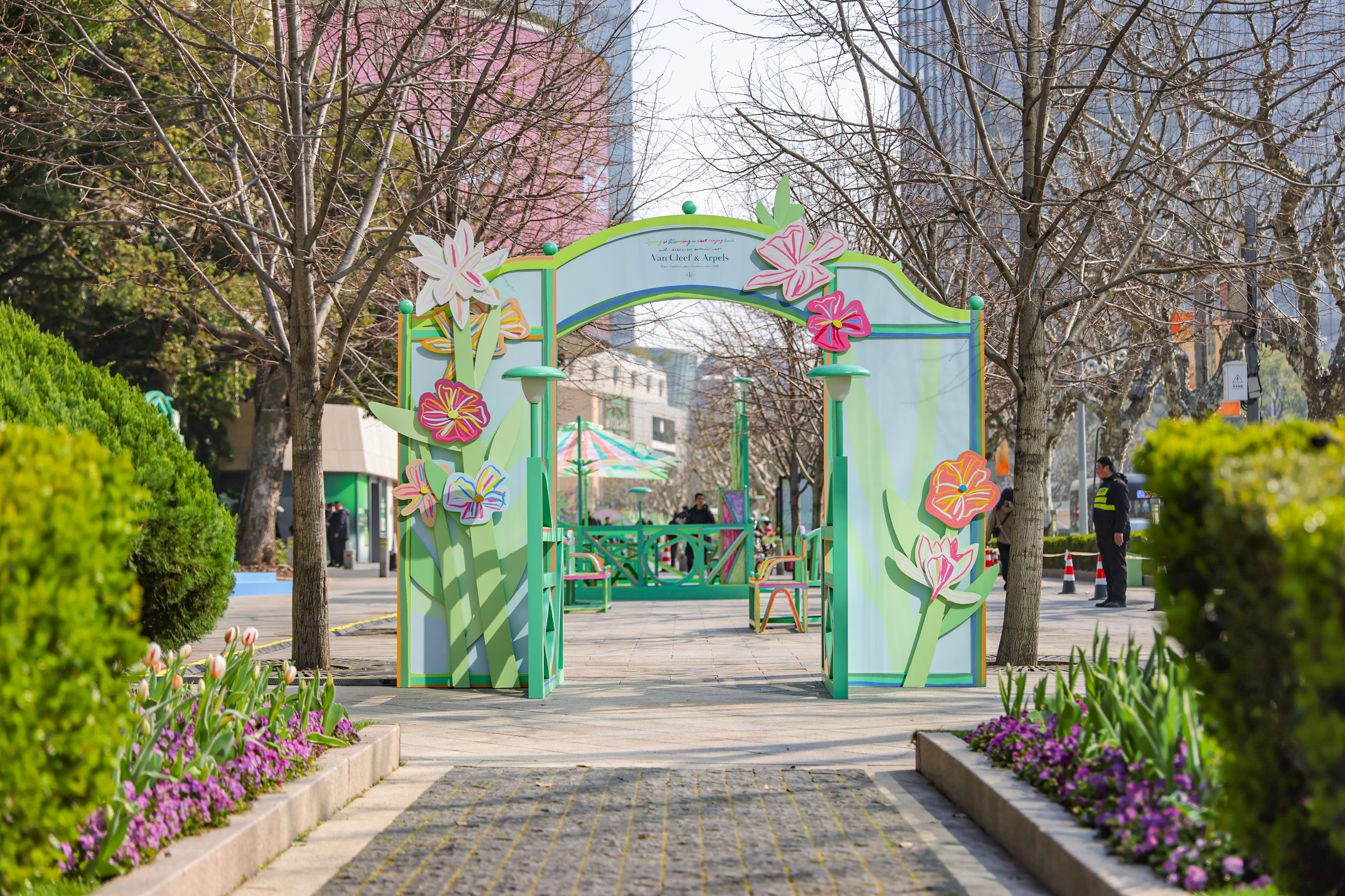 這是法國高級珠寶世家梵克雅寶(Van Cleef & Arpels)攜手法國藝術(shù)家Alexandre Benjamin Navet在上海南京西路打造的“梵克雅寶春意儂儂”限時(shí)春日花徑:以上海恒隆廣場為起點(diǎn),經(jīng)由上海商城,最終抵達(dá)玫瑰花園,以藝術(shù)家獨(dú)特的創(chuàng)造力,在南京西路上描繪出一幅徐徐展開的春日畫卷。