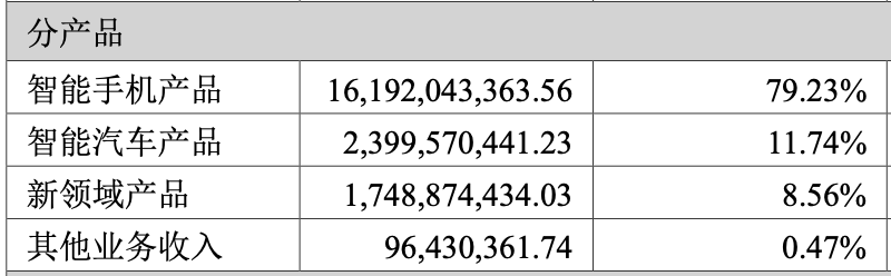 具體來看,2024年智能手機產品占比79.23%,智能汽車產品占比11.74%,新領域產品占比8.56%,還有其他業(yè)務收入占比0.47%。