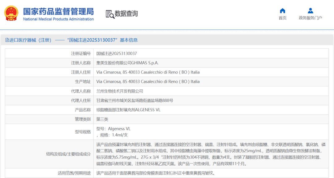 而號稱“玻尿酸替代品”——瓊脂糖的獲批,即蘭州生物代理的產(chǎn)品Algeness VL“瓊脂糖面部注射填充劑”于近日正式獲得國家藥監(jiān)局批準(zhǔn),或許又將加劇這一趨勢。