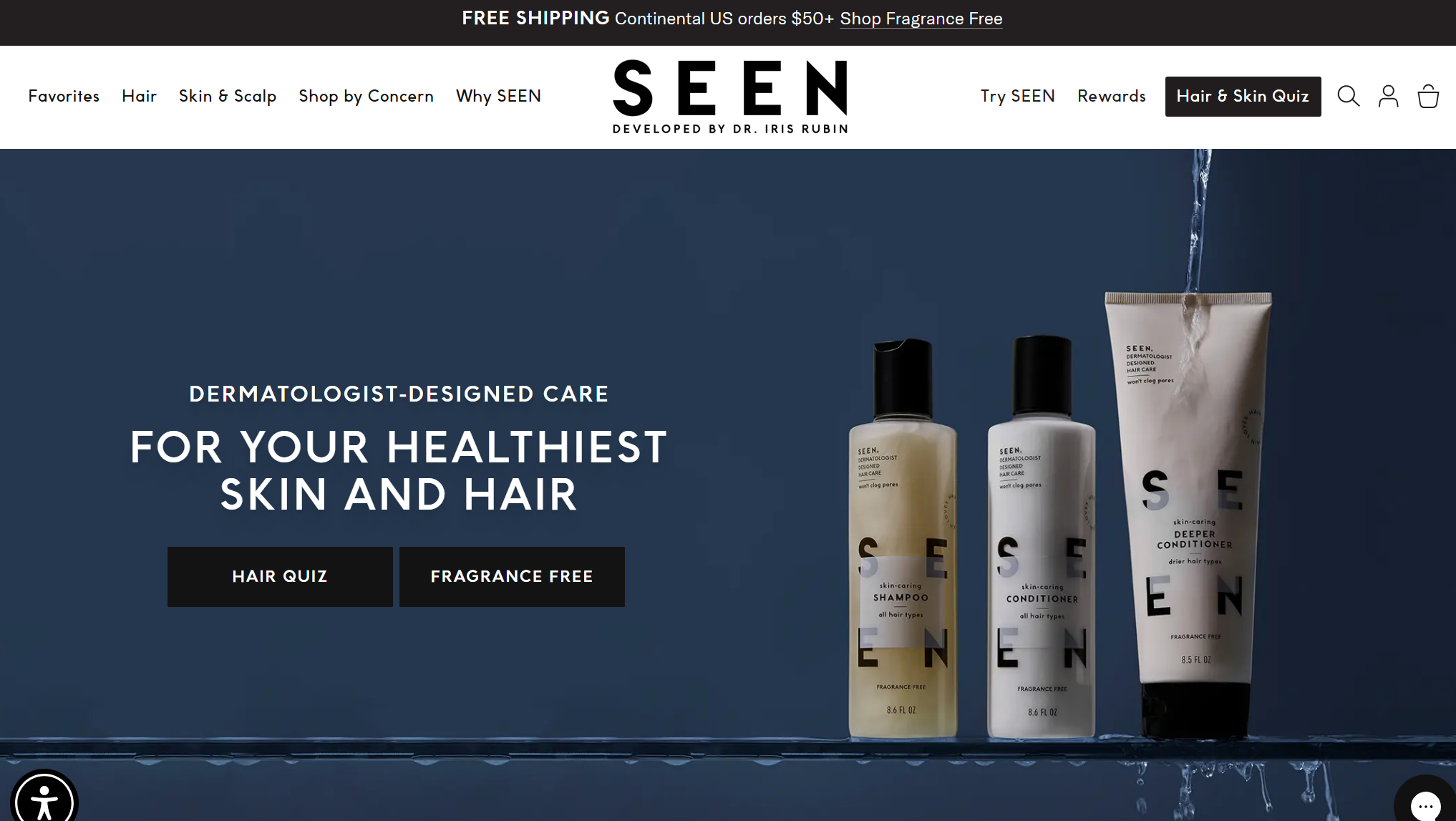 此類設計還能弱化一些皮膚學級品牌的“臨床醫(yī)學”感,讓品牌看起來不那么生硬“冷冰冰”,轉(zhuǎn)而展現(xiàn)出品牌希望賦予消費者的自信。例如皮膚科醫(yī)生創(chuàng)立的護發(fā)品牌Seen就通過在包裝上采用間距較大的醒目字體,試圖營造出“接地氣”的親民感;護發(fā)品牌Olaplex則于今年2月進行品牌升級,加粗原有標識,并在副文字使用句首大寫。