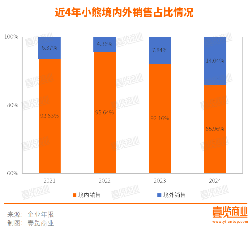 蘇泊爾和小熊境外收入不斷提升,其中,小熊境外收入2024年上漲了80.81%,境外銷售占比由7%提升至14%;蘇泊爾則上漲了21.07%,境外銷售占比由29.09%提升至33.45%。小熊還在財(cái)報(bào)中表示,2025年將堅(jiān)定品牌出海路線,積極開拓新興市場(chǎng),加大海外產(chǎn)品研發(fā),構(gòu)建海外渠道力與產(chǎn)品力的雙輪驅(qū)動(dòng)運(yùn)營(yíng)體系。