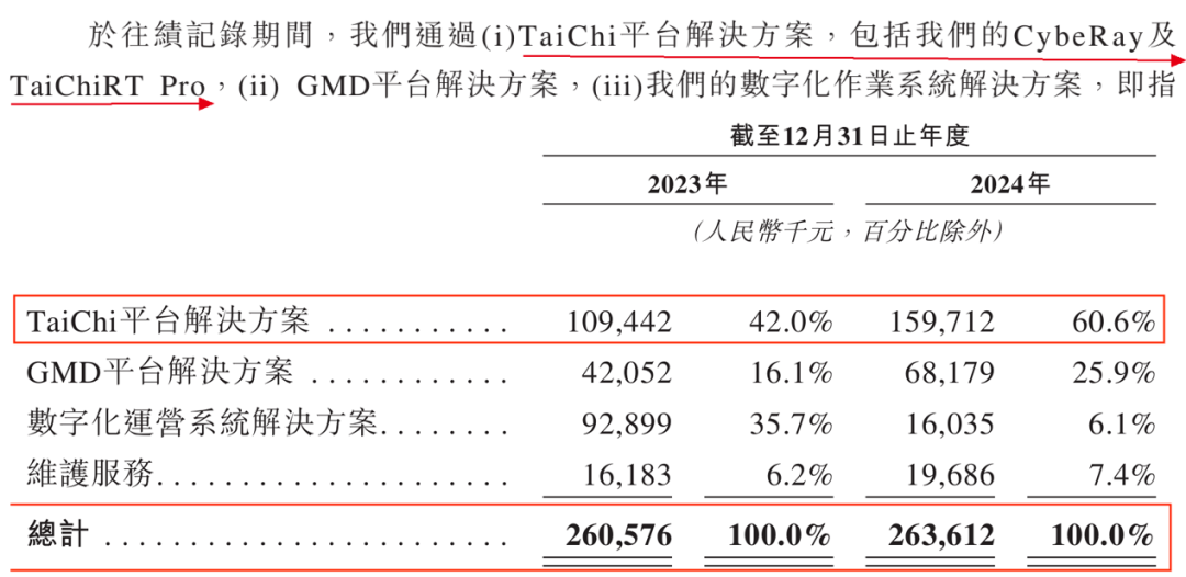 招股書顯示,2023年和2024年,大醫(yī)集團(tuán)實(shí)現(xiàn)收入2.61億元、2.64億元,其中由CybeRay及TaiChiRT Pro組成的TaiChi平臺(tái)解決方案分別貢獻(xiàn)了42.0%、60.6%收入。