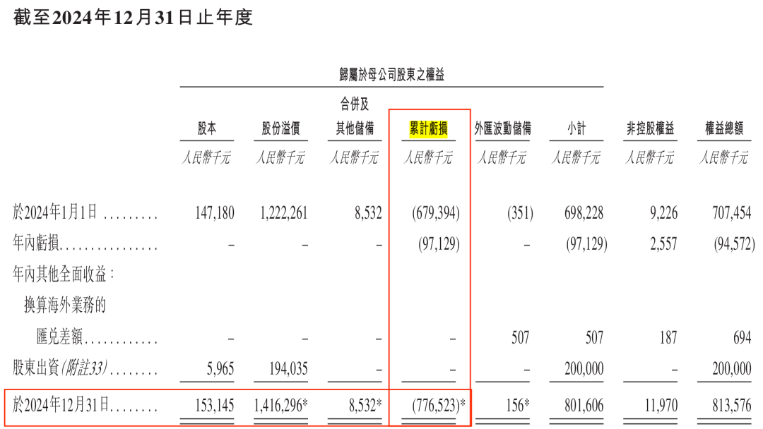 而這不過是冰山一角。截至2024年12月31日,大醫(yī)集團(tuán)歸屬于母公司股東的累計(jì)虧損已經(jīng)高達(dá)7.77億元。