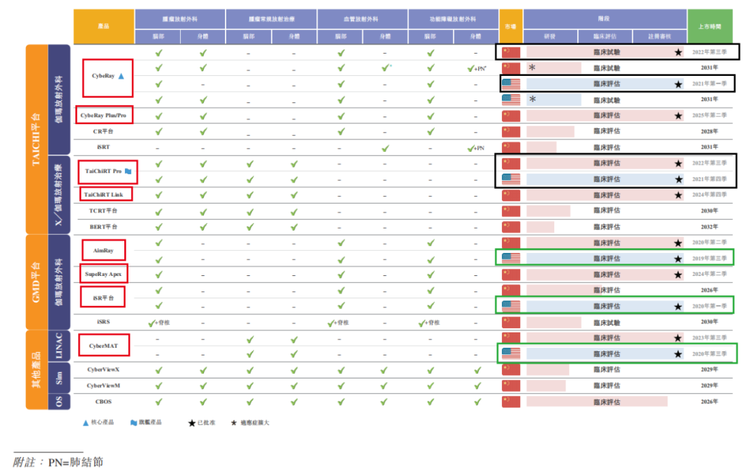 IPO前,大醫(yī)集團(tuán)的產(chǎn)品管線共有16條,其中8款產(chǎn)品已獲得上市批準(zhǔn),產(chǎn)品覆蓋腫瘤及非腫瘤(例如三叉神經(jīng)痛、帕金森、AVM等)適應(yīng)癥的放射外科治療體系。