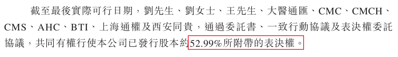 IPO前,劉海峰、劉怡辰、王斌(劉海峰妹夫)及一系列關(guān)聯(lián)公司,通過委托書、一致行動(dòng)協(xié)議及表決權(quán)委托協(xié)議,共同有權(quán)行使約52.99%表決權(quán)。