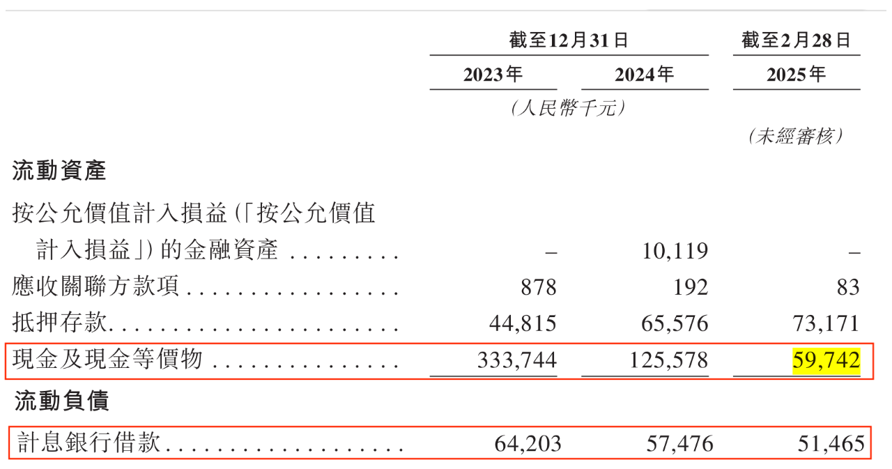 截至2025年2月28日,除7317萬元的抵押存款之外,大醫(yī)集團(tuán)的現(xiàn)金及現(xiàn)金等價(jià)物為5974萬元、短期銀行借款5147萬元,幾乎持平。