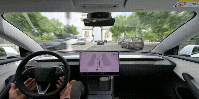 ▲特斯拉FSD在法國巴黎城區(qū)中穿行