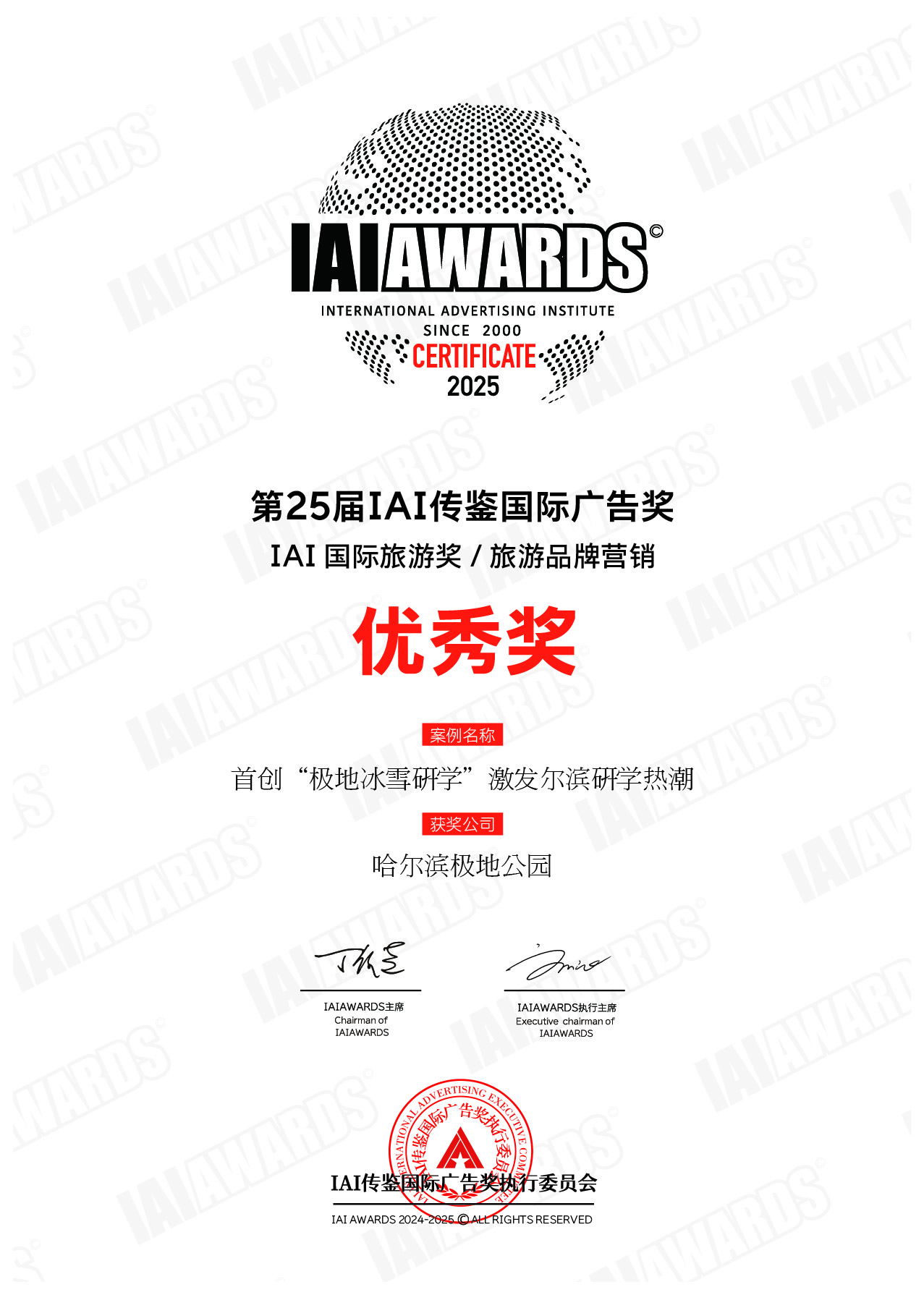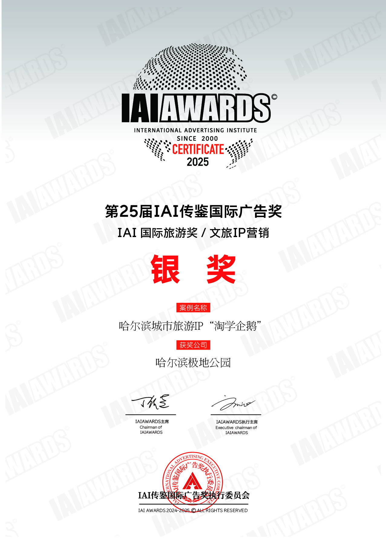 5月21日,第25屆 IAI傳鑒國際廣告獎(jiǎng)?lì)C獎(jiǎng)典禮在北京舉行,哈爾濱極地公園憑借卓越的創(chuàng)新實(shí)力與品牌影響力,一舉奪得“年度最具創(chuàng)新力品牌獎(jiǎng)”、“文旅IP營(yíng)銷銀獎(jiǎng)”及“旅游品牌營(yíng)銷優(yōu)秀獎(jiǎng)”三項(xiàng)大獎(jiǎng),繼連續(xù)四年斬獲IAI金獎(jiǎng)后,成為全國唯一一家五度蟬聯(lián)IAI大獎(jiǎng)的文旅景區(qū)。