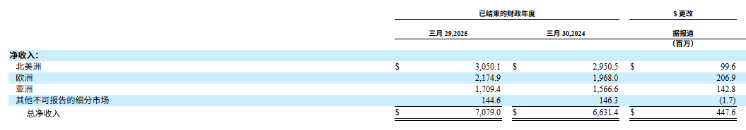 近日,美國(guó)時(shí)尚集團(tuán)拉夫勞倫(Ralph Lauren Corporation)發(fā)布2025財(cái)年業(yè)績(jī)。截至2025年3月29日的12個(gè)月,拉夫勞倫全年收入實(shí)現(xiàn)同比增長(zhǎng)7%至70.79億美元,凈利潤(rùn)同比增長(zhǎng)15%至7.43億美元。