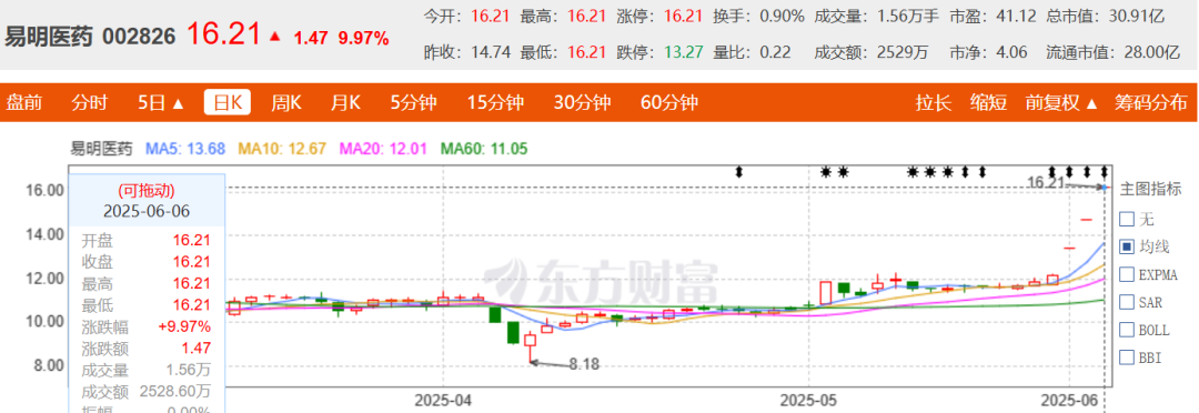 姚勁波出手,易明醫(yī)藥(002826.SZ)直接漲停!