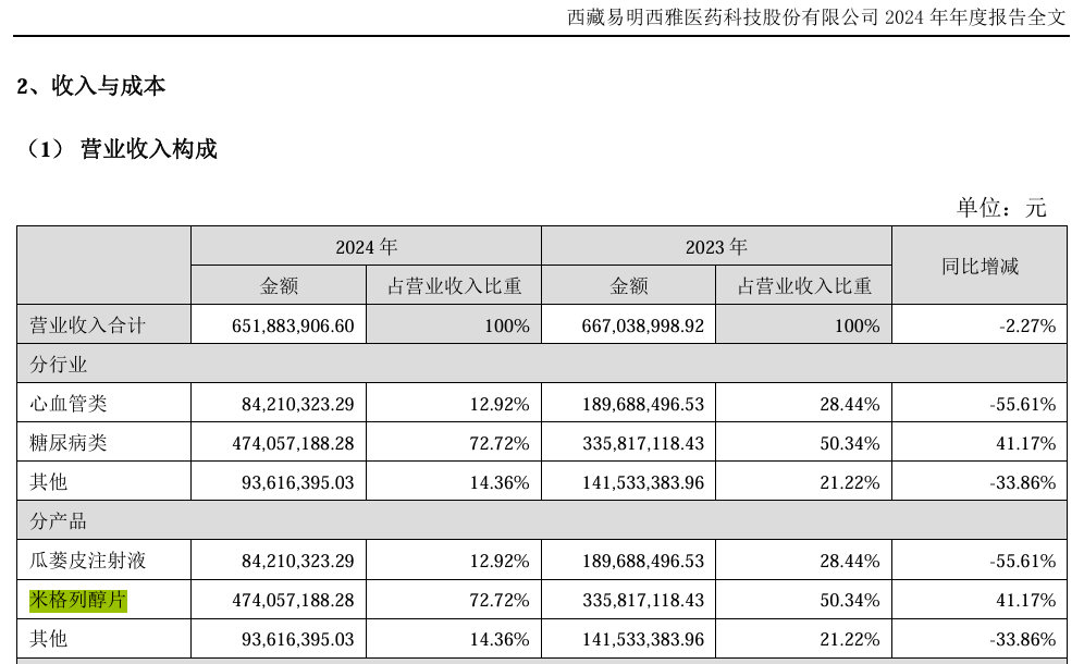 2024年財(cái)報(bào)顯示,易明醫(yī)藥當(dāng)年總營收約6.52億元,其中72.72%來自米格列醇片。
