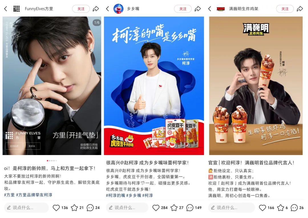 例如柯淳目前已經(jīng)成立個人工作室,雖然背后的運營團隊不詳,但成立個人工作室后柯淳在商務資源方面明顯更加專業(yè)化,已經(jīng)簽約多項代言合作和直播合作。