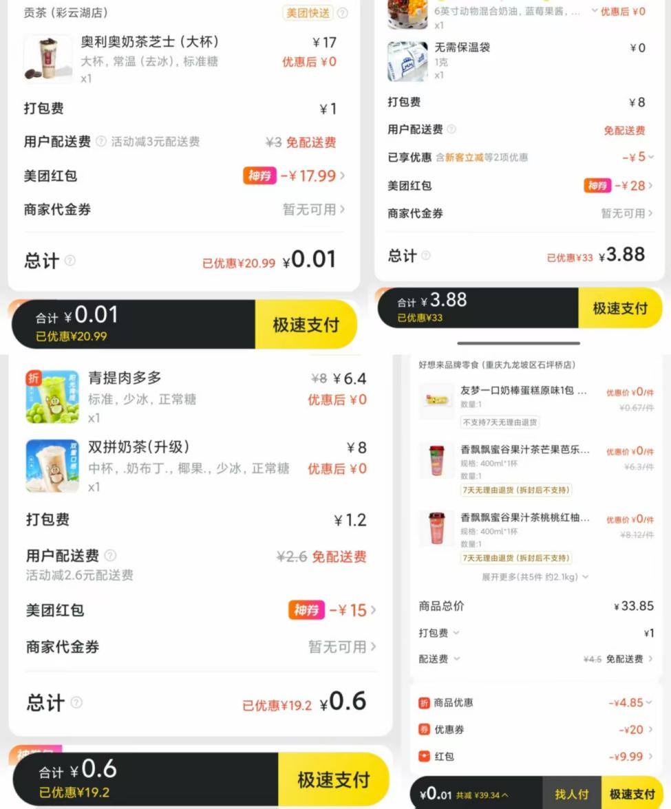 而這背后則是7月5日下午美團(tuán)大發(fā)各種優(yōu)惠券和折扣補(bǔ)貼,券后只需要支付0.01元,相當(dāng)于白送。