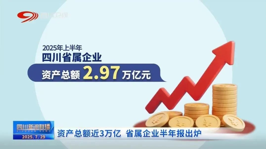 2025年上半年,四川省屬監(jiān)管企業(yè)資產(chǎn)總額達(dá)2.97萬(wàn)億元,同比增長(zhǎng)9.8%,逼近3萬(wàn)億大關(guān)。