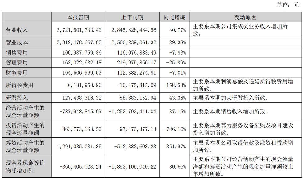 常山北明表示,公司營業(yè)收入變動原因,主要系本期公司集成類業(yè)務(wù)收入增加所致。至于凈利潤變動原因,公司未在半年報中做出說明。