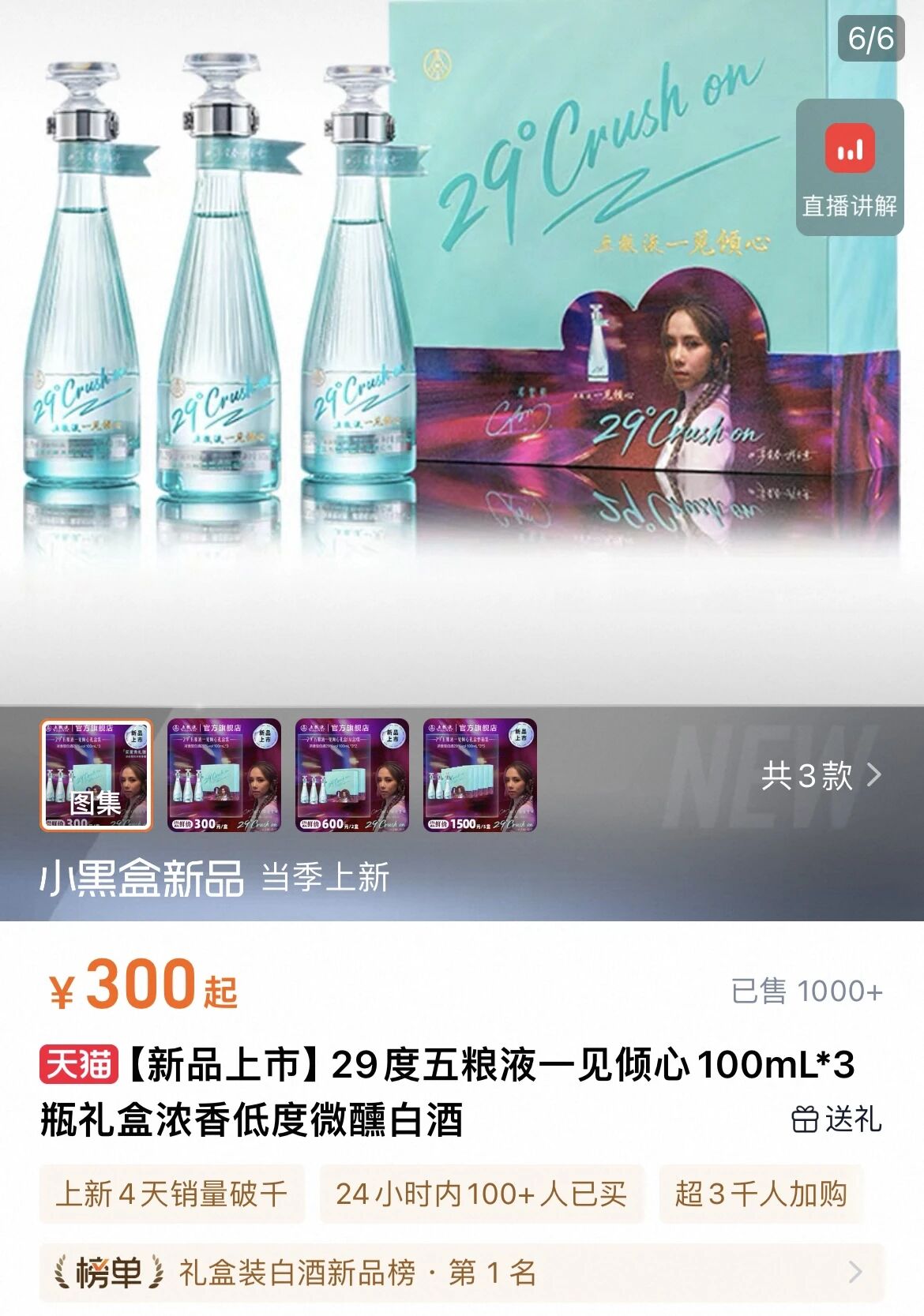 這款新品的酒精度只有29度,設(shè)有每瓶500ml和禮盒100ml*3兩種規(guī)格,定價(jià)分別為399元/瓶、300元/盒。