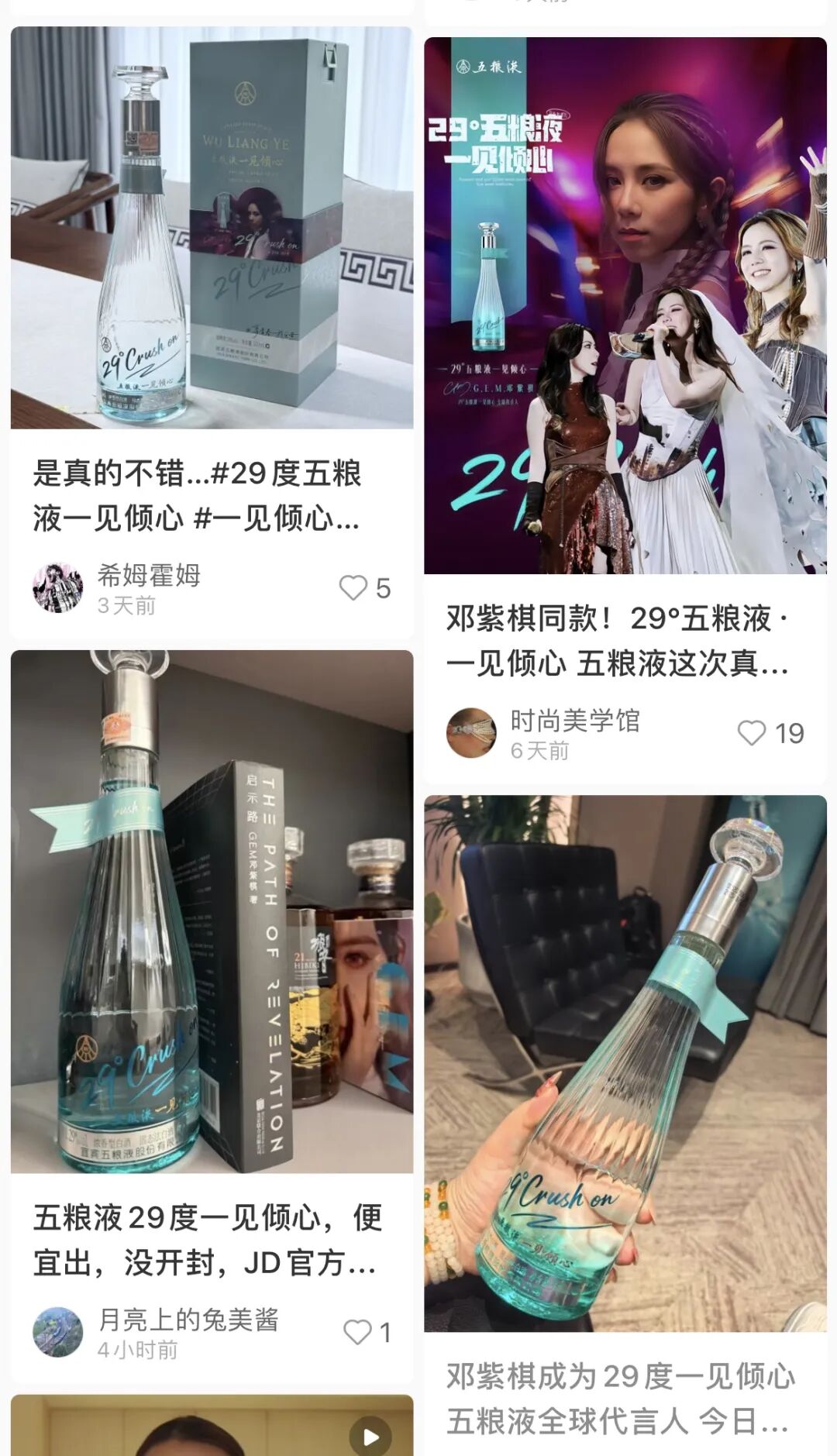 這也就造成了五糧液新品定位與目標(biāo)人群的錯(cuò)位。29度的白酒還是白酒,遠(yuǎn)超人們對(duì) “微醺” 的普遍認(rèn)知。小紅書上有鄧紫棋粉絲發(fā)帖稱,“自己不喝酒,買來(lái)送給爸爸”。此外,也有消費(fèi)者反饋,“29°五糧液一見傾心” 的口感與傳統(tǒng)高度白酒差異不大。
