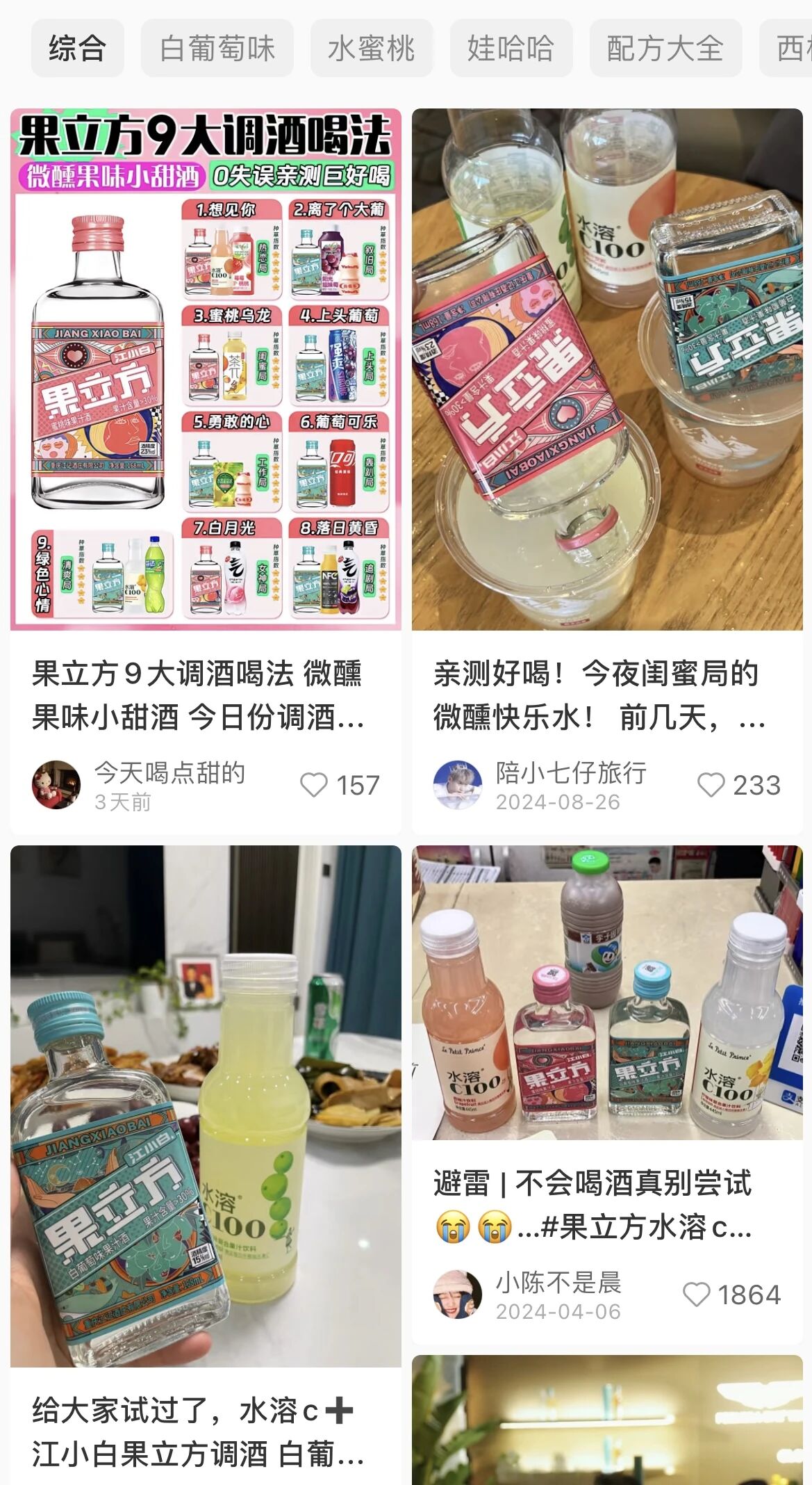 2、玩轉(zhuǎn)社交媒體。瓶子集團(tuán)(原江小白酒業(yè))旗下的果汁酒品牌果立方這兩年在社交媒體上成為爆款,核心在于擅長(zhǎng)社交媒體的玩法,在小紅書上推出各種調(diào)酒配方,以“便利店調(diào)酒”“路邊攤調(diào)酒”引發(fā)消費(fèi)者大量模仿,從兌水溶C到養(yǎng)樂(lè)多、東方樹葉、雪碧、冰紅茶,可謂“萬(wàn)物皆可DIY”,調(diào)酒的花樣玩法甚至通過(guò)反向文化輸出到韓國(guó)。而且品牌緊跟年輕人的情緒狀態(tài),比如根據(jù)最近的“邪修風(fēng)”推出邪修調(diào)酒。