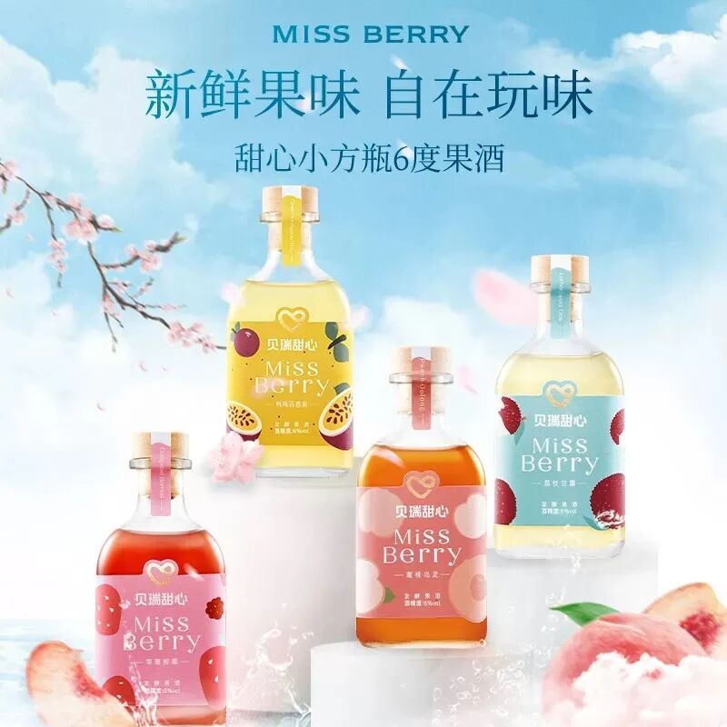 4、顏值即正義。低度酒市場(chǎng),不少品牌以女性為主要受眾,在包裝設(shè)計(jì)上也很下功夫,以顏值取勝。此前融資上億的貝瑞甜心,用小方瓶的設(shè)計(jì)和清新色調(diào),提供視覺(jué)上的享受。同時(shí),精美的包裝也方便拍照分享,進(jìn)一步提升了產(chǎn)品的傳播效果。