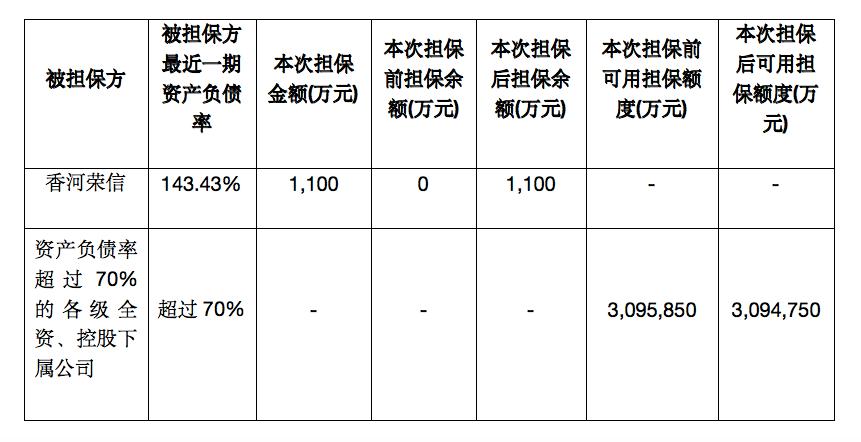 被擔(dān)保子公司資產(chǎn)負(fù)債率143.43% 下屬子公司亦擔(dān)保900萬元