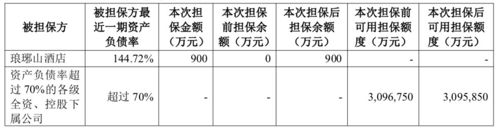 榮盛發(fā)展全資子公司滁州榮盛康旅旅游開發(fā)有限公司瑯琊山榮逸山水酒店(以下簡稱“瑯琊山酒店”)與滁州皖東農(nóng)村商業(yè)銀行股份有限公司豐樂支行擬繼續(xù)合作,榮盛發(fā)展全資子公司滁州榮盛康旅旅游開發(fā)有限公司、南京榮盛康旅旅游開發(fā)有限公司、榮盛康旅投資有限公司為上述融資提供連帶責(zé)任保證擔(dān)保。擔(dān)保本金總額不超過900萬元,擔(dān)保期限不超過48個月。值得關(guān)注的是,被擔(dān)保方瑯琊山酒店最近一期資產(chǎn)負(fù)債率為144.72%,遠(yuǎn)超70%。