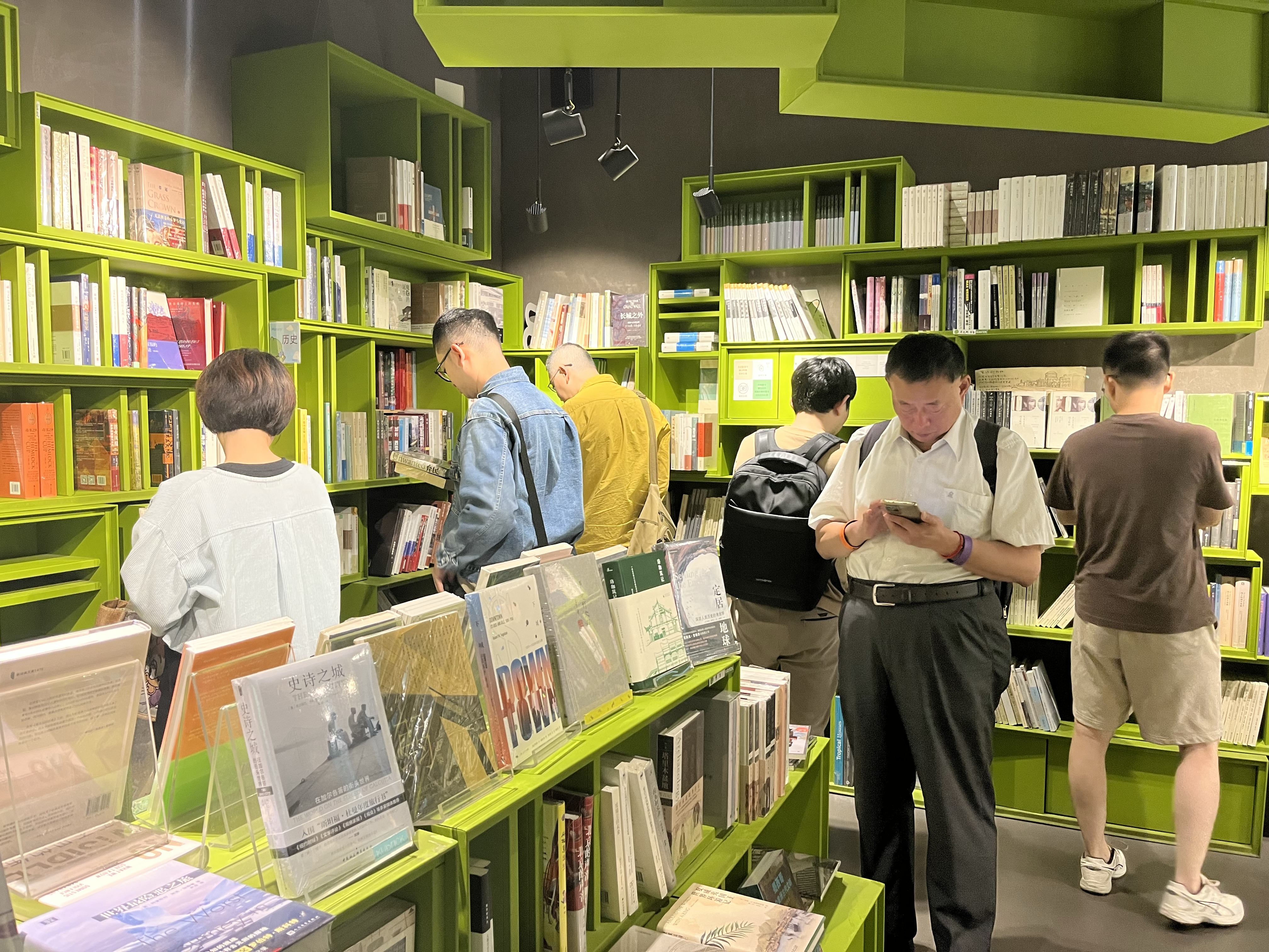同樣感到難過、不舍的還有80后、當(dāng)代MOMA社區(qū)的住戶郭陽(化名)。他接連來了好幾天庫布里克書店,坐在熟悉的木質(zhì)桌椅邊,翻看十多年前拍攝的照片,里面出現(xiàn)了庫布里克標(biāo)志性的綠色書架。2009年12月28日是庫布里克開業(yè)的日子,郭陽是最早光顧的那批客人,他在這里買過一些小眾的歷史書,例如《劊子手世家》。獨(dú)自待著的時(shí)光之外,他也會和朋友約好在咖啡區(qū)小聚。書店周圍的店鋪換了幾茬,但庫布里克一直在。“我是個(gè)戀舊的人,看不得書架被拆除的場景?!惫栒f道。