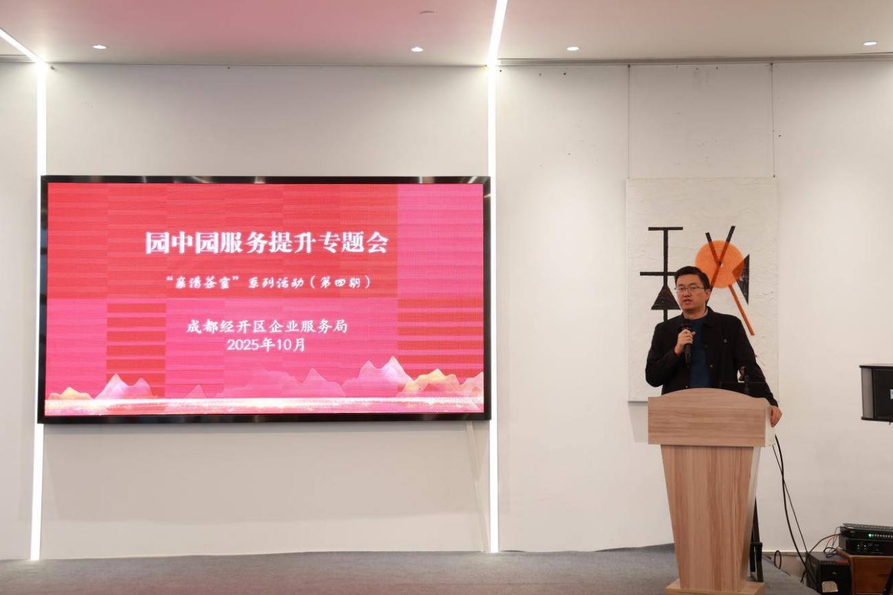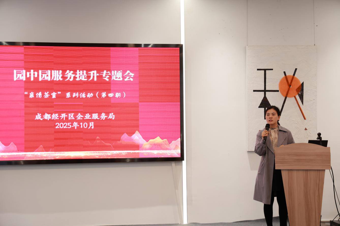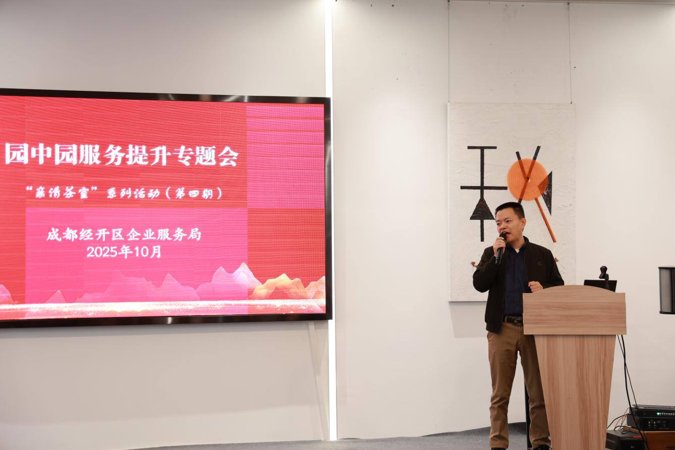 為扎實(shí)推進(jìn)“立園滿園”行動,深化“進(jìn)解優(yōu)促”工作,以精準(zhǔn)服務(wù)破解園區(qū)發(fā)展瓶頸,推動區(qū)域經(jīng)濟(jì)高質(zhì)量發(fā)展,10月23日下午,成都經(jīng)開科技產(chǎn)業(yè)孵化園墨云山體驗(yàn)館內(nèi),成都經(jīng)開區(qū)“親清茶室”系列活動暨“園中園服務(wù)提升專題會”在此舉行。