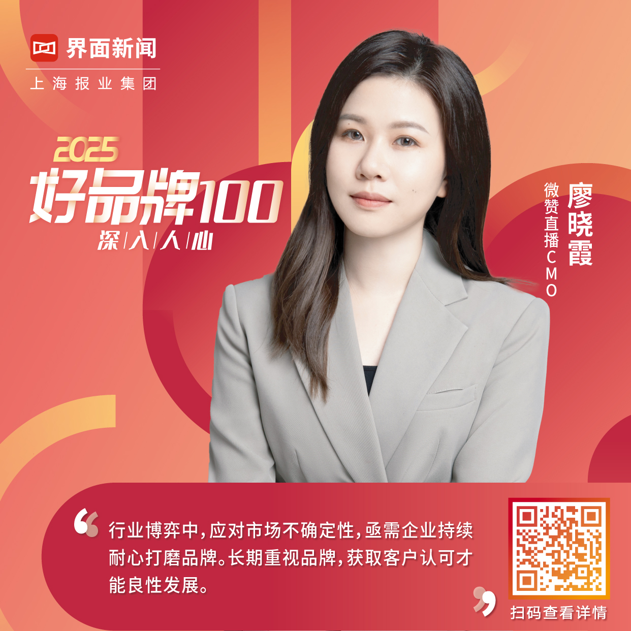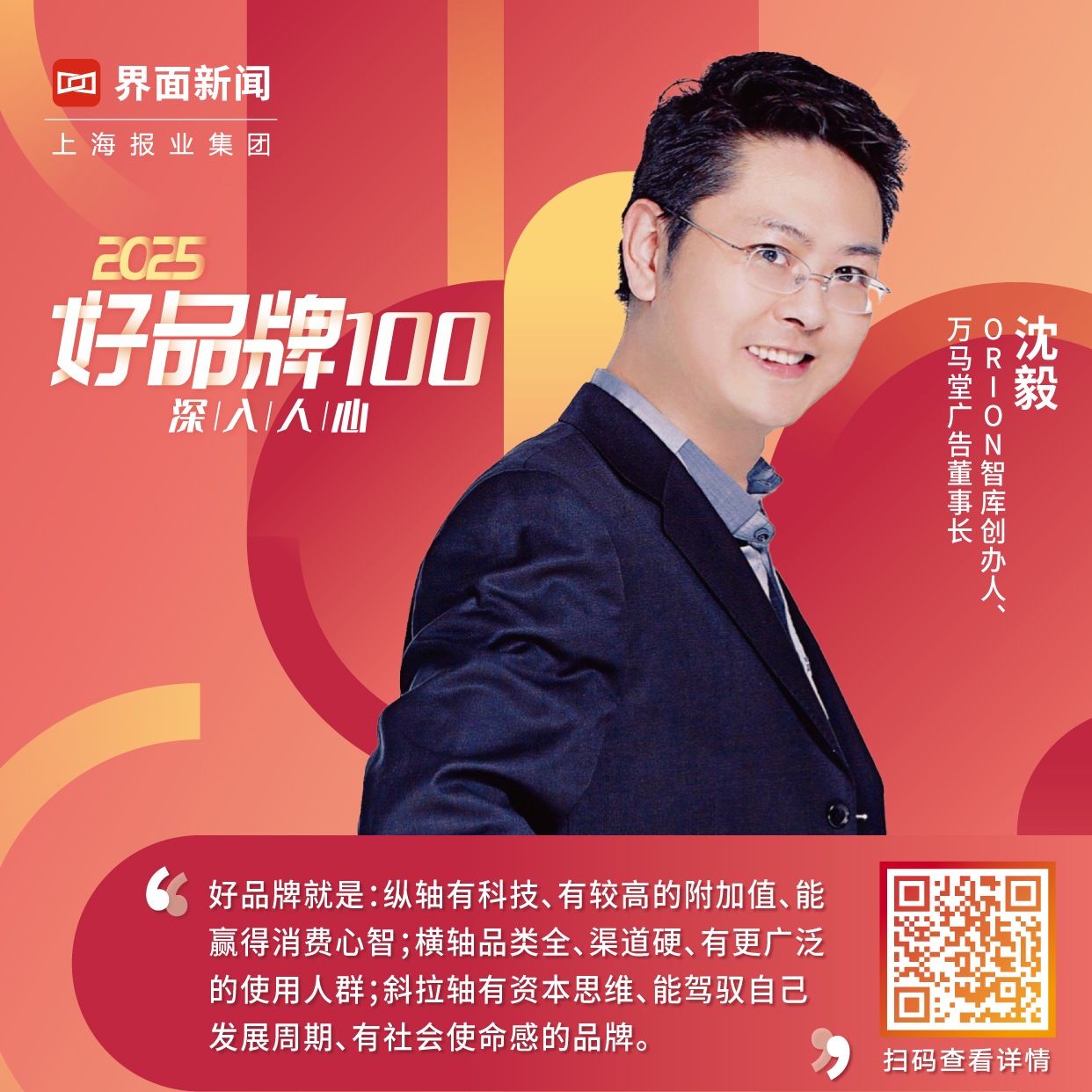 在此背景下,上海報(bào)業(yè)集團(tuán) | 界面新聞再度舉辦2025【好品牌100】評選活動。本次評選活動以尋找講好品牌故事、擁有核心競爭力、持續(xù)創(chuàng)新、面向國際的“好”品牌,推動社會各界參與共建繁榮的品牌生態(tài)為目標(biāo),將聚集100位專家,聚焦100個(gè)行業(yè)賽道,最終評選出100個(gè)好品牌。由此,我們期待與各行各業(yè)對品牌發(fā)展有所思考的同仁一道,在對“好品牌”不斷的重訪中,尋得中國社會品牌向更好,向更善發(fā)展的未來可能。