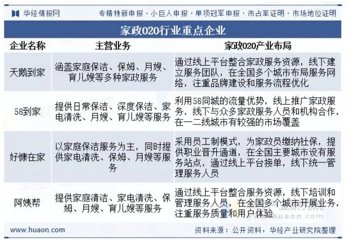 整體而言,我國家政O2O行業(yè)競爭激烈,據(jù)華經(jīng)產(chǎn)業(yè)研究院發(fā)布的《2025年中國家政O2O行業(yè)發(fā)展現(xiàn)狀與趨勢分析,市場需求分層與新興賽道崛起》顯示,天鵝到家、58到家等頭部平臺憑借資本和資源優(yōu)勢占據(jù)較大市場份額,處于第一梯隊(duì)。