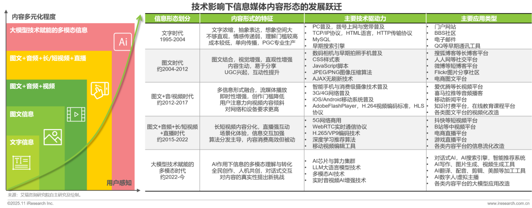 技術(shù)推動(dòng)媒體從文字時(shí)代躍遷至多模態(tài)時(shí)代,響應(yīng)用戶實(shí)時(shí)檢索、深度思考、情感共鳴、全民創(chuàng)作的多元化需求