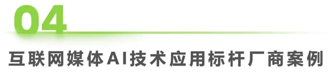在此背景下,本次研究聚焦生成式AI技術(shù)對(duì)互聯(lián)網(wǎng)媒體全鏈路的深度賦能,以及標(biāo)桿平臺(tái)在智能化轉(zhuǎn)型中的創(chuàng)新實(shí)踐,旨在為內(nèi)容創(chuàng)作者優(yōu)化生產(chǎn)流程、為媒體平臺(tái)提升運(yùn)營效率提供有力支持,同時(shí)為行業(yè)決策者與投資者提供前瞻性觀點(diǎn)。