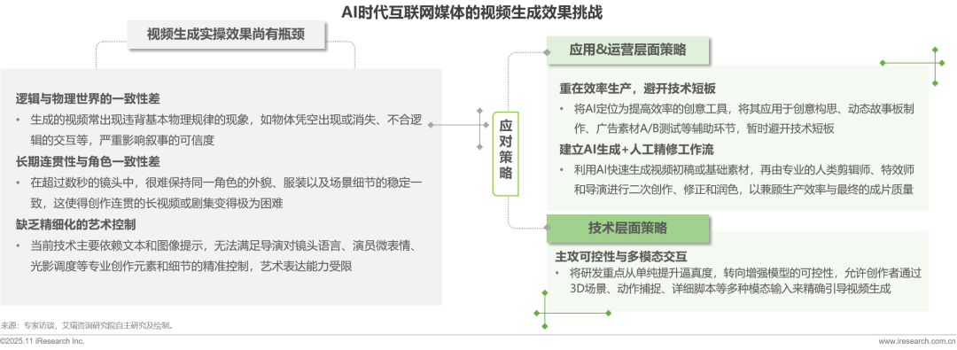 AI視頻生成技術(shù)在物理邏輯一致性、角色身份連貫性等方面存在局限,構(gòu)成當(dāng)前商業(yè)化應(yīng)用的核心瓶頸