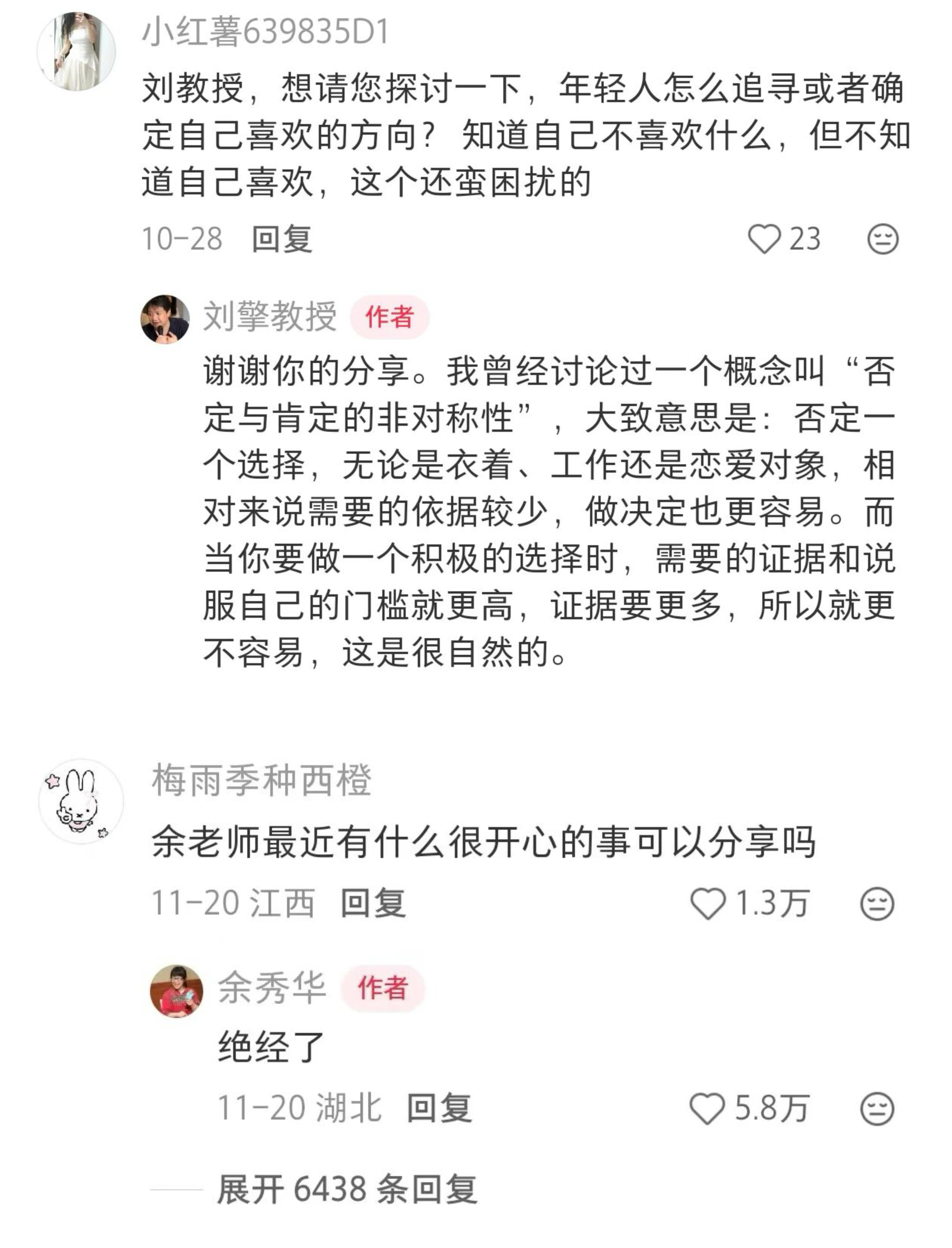 丁欣雨:《中國(guó)新聞周刊》發(fā)了一篇文章,寫(xiě)到最近小紅書(shū)有很多文化名人起號(hào),發(fā)布一種AMA(我是xxx,ask me anyting,有問(wèn)必答)的內(nèi)容范式,有很多網(wǎng)友在評(píng)論區(qū)提問(wèn),生活太苦了怎么辦?天氣冷心情差怎么辦?他們親自下場(chǎng)一一解答,運(yùn)用一點(diǎn)知識(shí),也會(huì)用幽默表達(dá)來(lái)回應(yīng)他們。這大概也能對(duì)應(yīng)上許知遠(yuǎn)所說(shuō)的“接地氣”吧。即使是擁有很多知識(shí)儲(chǔ)備和文化資本的名人,我們跟他們的距離也沒(méi)有想象中那么遠(yuǎn),他們也跟我們一樣有平凡親民的一面。