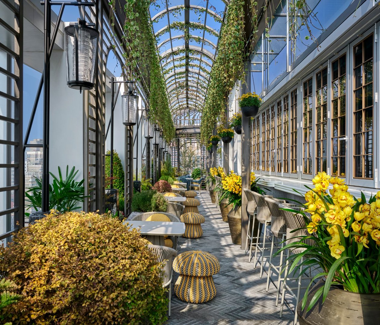 位于頂層的THE ROOFTOP BAR則致敬上海前衛(wèi)格調(diào)與創(chuàng)意活力,酒吧墻面特別陳列了時裝設(shè)計過程中的裝裱藝術(shù)。特別的是,打開露臺的窗戶,調(diào)酒師可以直接和客人互動調(diào)酒。