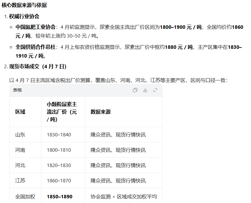 4月正值全國(guó)春耕用肥高峰期,農(nóng)業(yè)剛需集中釋放,帶動(dòng)尿素、液氨、磷肥等化肥原料價(jià)格持續(xù)走高。數(shù)據(jù)顯示,截至4月初,國(guó)內(nèi)尿素主流出廠價(jià)達(dá)1850-1890元/噸(綜合自中國(guó)氮肥工業(yè)協(xié)會(huì)(CNIA)的監(jiān)測(cè)與行業(yè)現(xiàn)貨報(bào)價(jià),結(jié)合4 月 7 日區(qū)域成交數(shù)據(jù)綜合測(cè)算),較年初上漲約9%;硫磺、磷酸一銨等原料價(jià)格單噸漲幅達(dá)50-800元,成本端強(qiáng)勢(shì)支撐化肥企業(yè)盈利預(yù)期。
