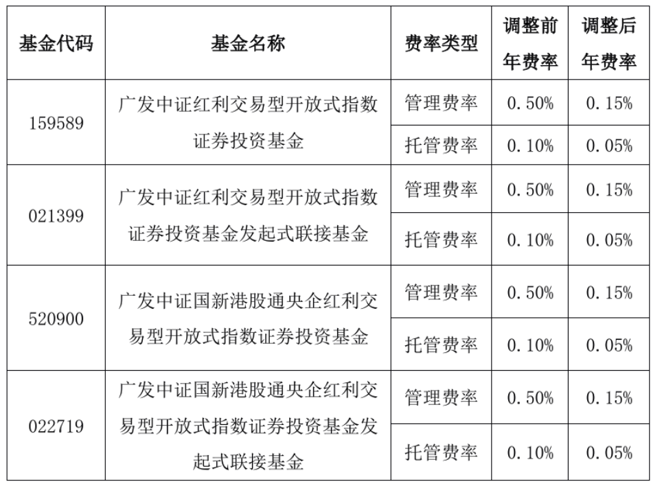 4月7日,廣發(fā)基金公告,經(jīng)與基金托管人招商銀行股份有限公司協(xié)商一致,決定自2026年4月9日起下調(diào)廣發(fā)中證國新港股通央企紅利交易型開放式指數(shù)證券投資基金及其聯(lián)接基金、廣發(fā)中證紅利交易型開放式指數(shù)證券投資基金及其聯(lián)接基金的管理費率及托管費率,同時根據(jù)最新法律法規(guī)對基金合同進行相應(yīng)修改,并對上述基金基金合同等法律文件進行相應(yīng)修訂。