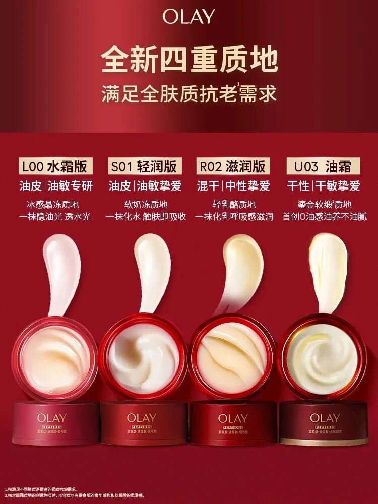 目前,超紅瓶分為四重質(zhì)地,可以滿足全膚質(zhì)抗老需求。