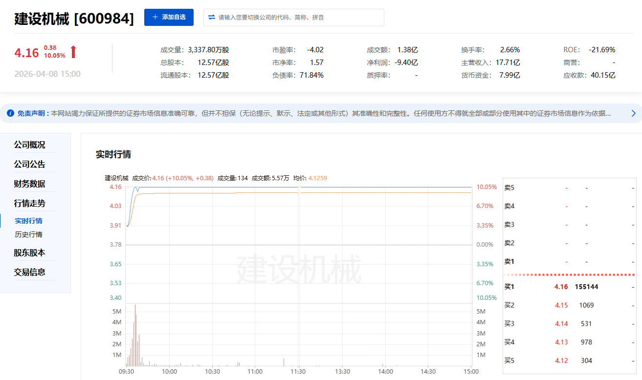 4月8日,A股市場整體走強,陜西板塊表現(xiàn)活躍,易點天下(301171)與建設(shè)機械(600984)成為板塊內(nèi)兩大亮點。
