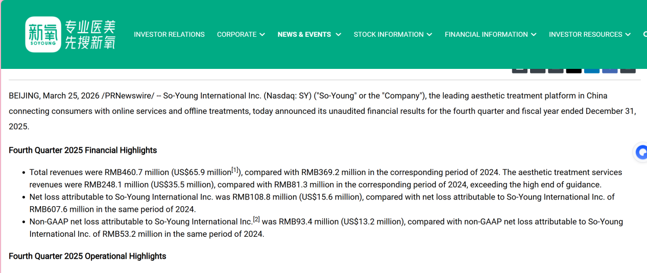 在經(jīng)歷了一場轟轟烈烈的線下轉型后,新氧在上個月底交出了一份矛盾的答卷:公開信息顯示,2025年第四季度,新氧實現(xiàn)總收入4.61億元,同比增長25%,創(chuàng)下公司單季營收歷史新高。2025年全年,新氧的總收入15.23億元,同比增長3.87%。同時,2025年,線下診所收入暴漲298.7%,門店數(shù)量快速增長。