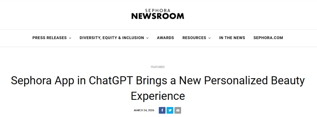 此前,絲芙蘭宣布將在ChatGPT上發(fā)布了一款其專屬應用,并在美國市場進行試點。該應用可以通過提供精心策劃的建議和推薦,協(xié)助顧客發(fā)掘并選購適合他們的美妝解決方案。用戶可以通過提示詞或者綁定會員賬戶等方式,提供個性化的產品推薦,未來還可以直接在該應用界面內完成結賬與支付流程。