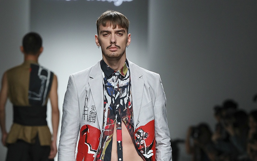 隨著一系列神秘的東方音樂,秀場(chǎng)兩邊的屏幕開始以黑白的色彩演繹一段帶有中國山海經(jīng)中妖怪的展示視頻。隨后先鋒舞蹈藝術(shù)家段婧婷亦以“山海錯(cuò)”世界中的萬物有靈的祭祀之舞,拉開這“山海錯(cuò)”世界的序幕。