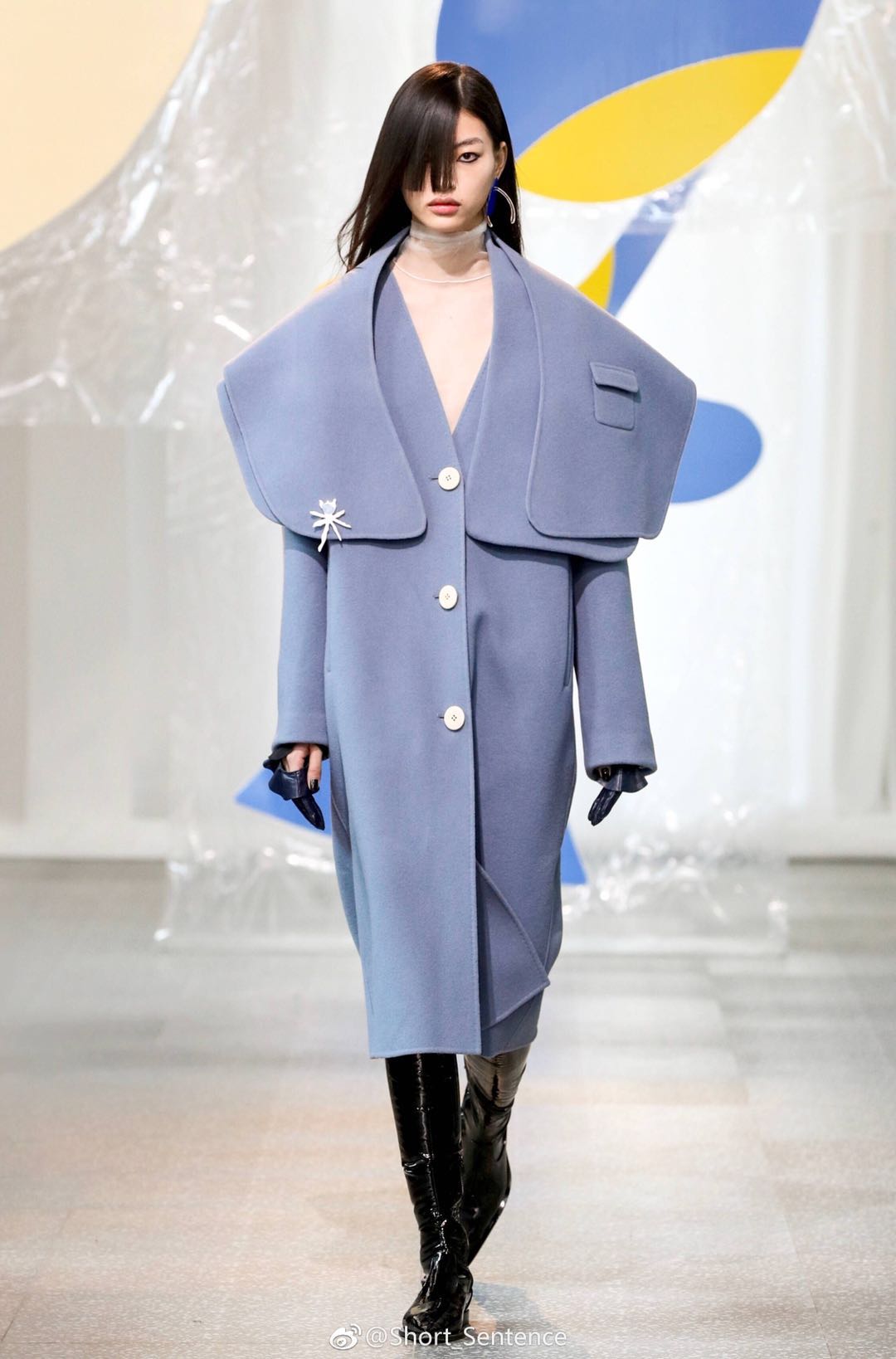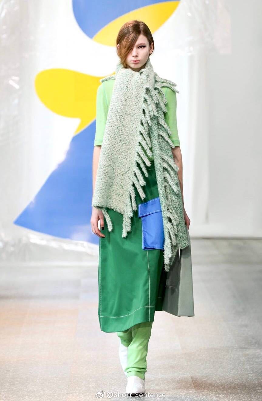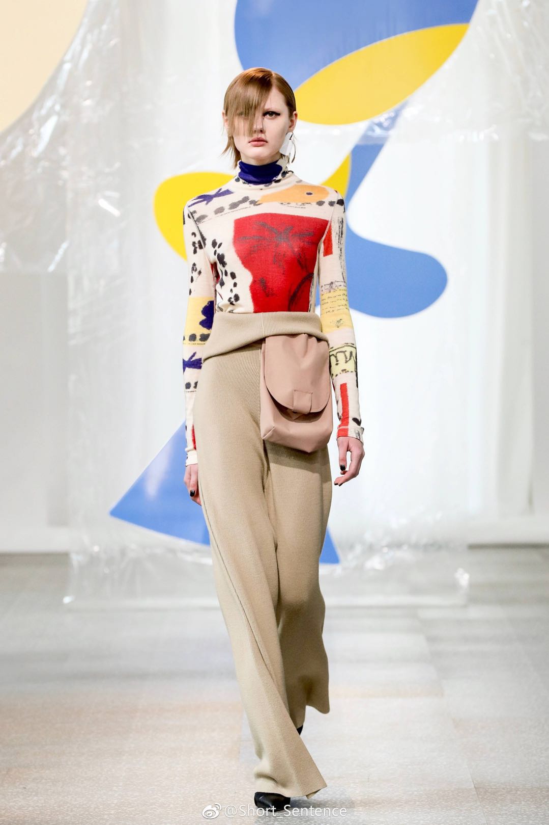 Short Sentence邀請函上的不規(guī)則幾何色塊預示著,這又是一季用色彩俘獲人心的設計。這一季的主題是“Like Dreamers Do”,靈感來自于超現(xiàn)實主義畫家Joan Mirò作品中的高飽和度色彩和抽象符號,這些都成了這一季Short Sentence的設計主角。