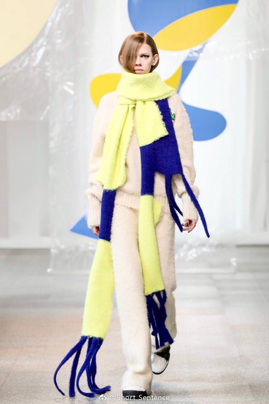 這一季的主打材質為羊毛、羊絨以及羊駝毛等天然纖維,還使用了可機洗羊毛針織羅文面料,為的是增強服裝在保暖和輕薄方面的實用性。款式方面是經(jīng)典的大廓形襯衫和外套、也有風衣、羽絨服和新的Essential牛仔產(chǎn)品。設計師使用了解構手法,利用材料和顏色的拼接,讓衣服呈現(xiàn)了拼接感,例如可拆卸的口袋和翻領,牛仔和西褲的拼接等。