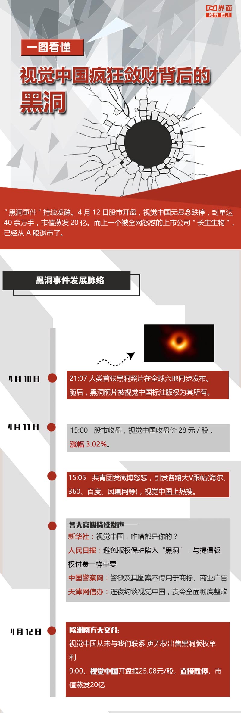 “黑洞事件”持續(xù)發(fā)酵。4月12日股市開(kāi)盤(pán),視覺(jué)中國(guó)無(wú)懸念跌停,封單達(dá)40余萬(wàn)手,市值蒸發(fā)20億。